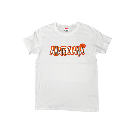 Amatriciana celebra uno dei piatti più iconici della cucina romana. Una grafica dedicata alla celebre pasta con sugo di pomodoro, guanciale e pecorino, simbolo di convivialità e tradizione, trasformata in un souvenir originale e gustoso.
