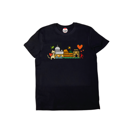 Disponibile su T-shirt in cotone, tote bag, pochette, magneti, portachiavi, quadretti decorativi e altri accessori artigianali, questa collezione è perfetta come souvenir moderno di Roma o come idea regalo creativa per chi ama il design pop art e lo spirito vibrante della città.