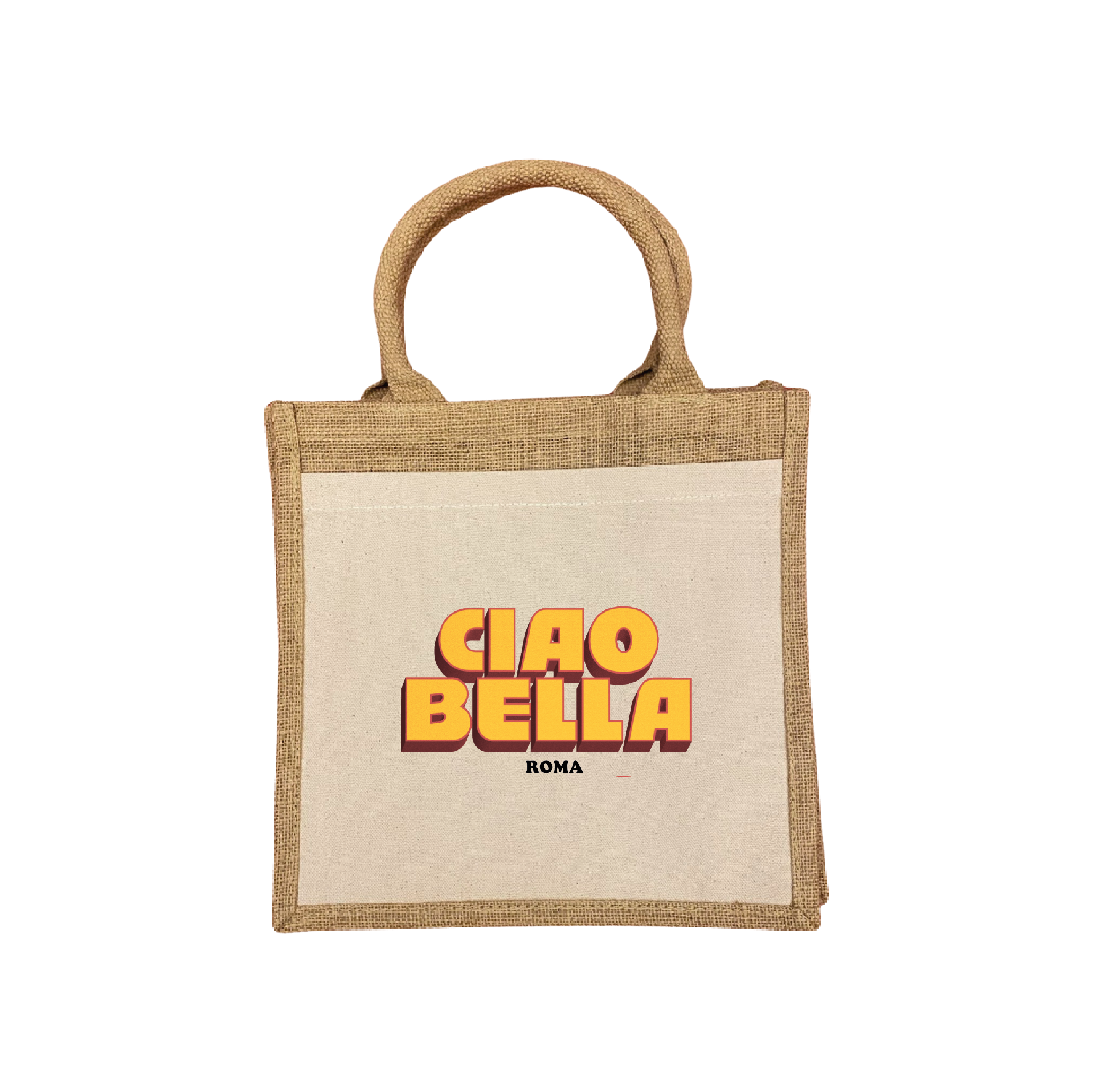 Ideale per l'estate, la nostra borsa 100% juta laminata. Shopper multiuso in Juta laminata con tasca frontale in tela 100% cotone.