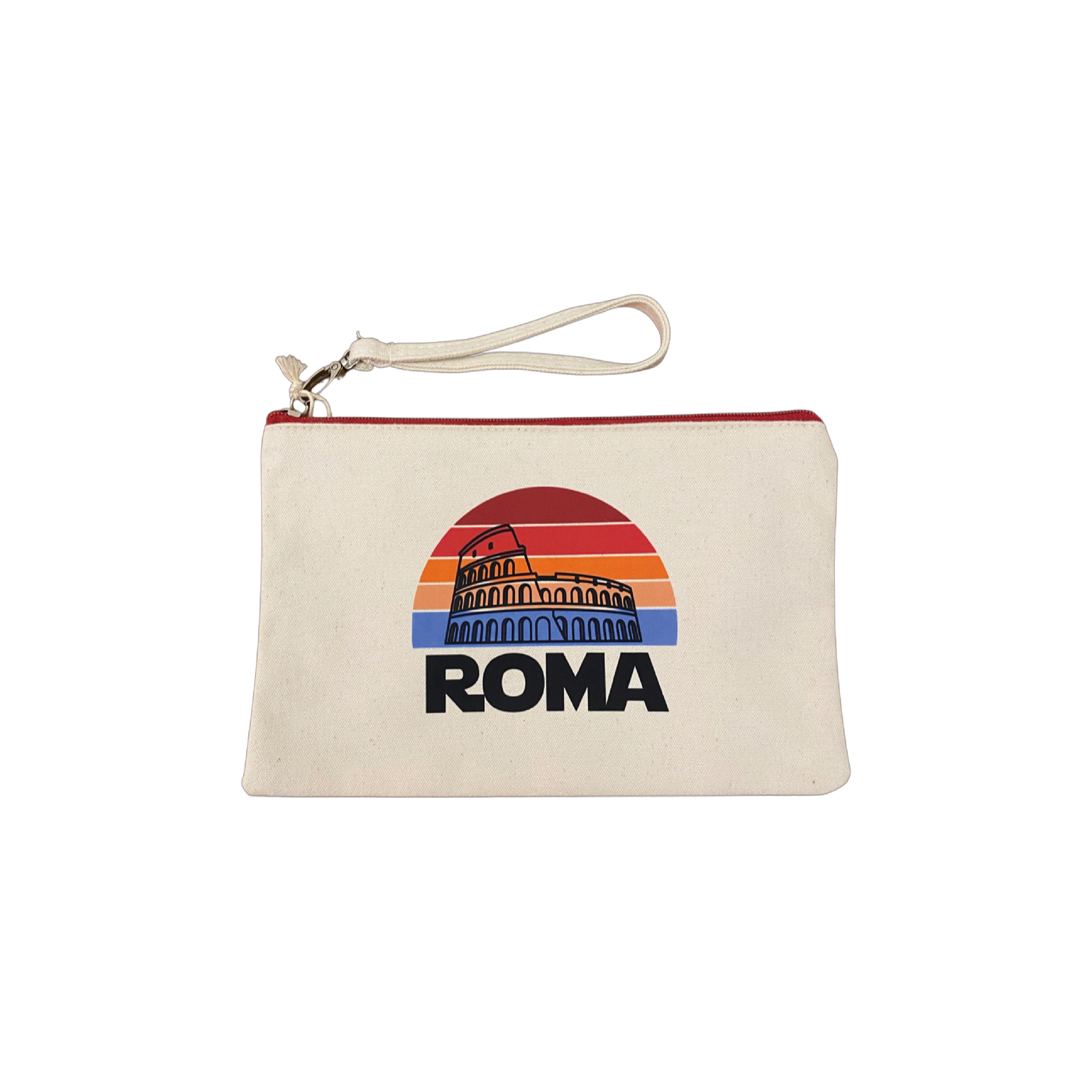 Una pochette multiuso, pratica e unica, ideale come beauty case, portatutto da viaggio o astuccio con un tocco di romanità.