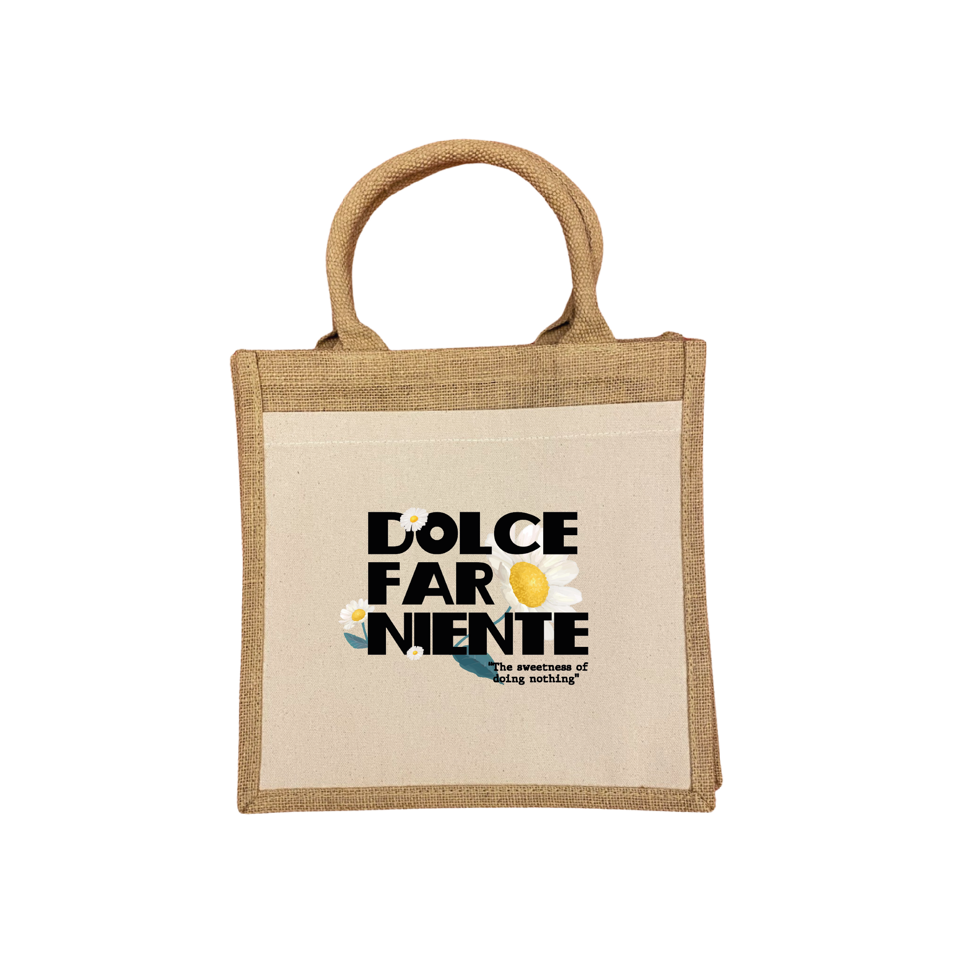 Ideale per l'estate, la nostra borsa 100% juta laminata. Shopper multiuso in Juta laminata con tasca frontale in tela 100% cotone.
