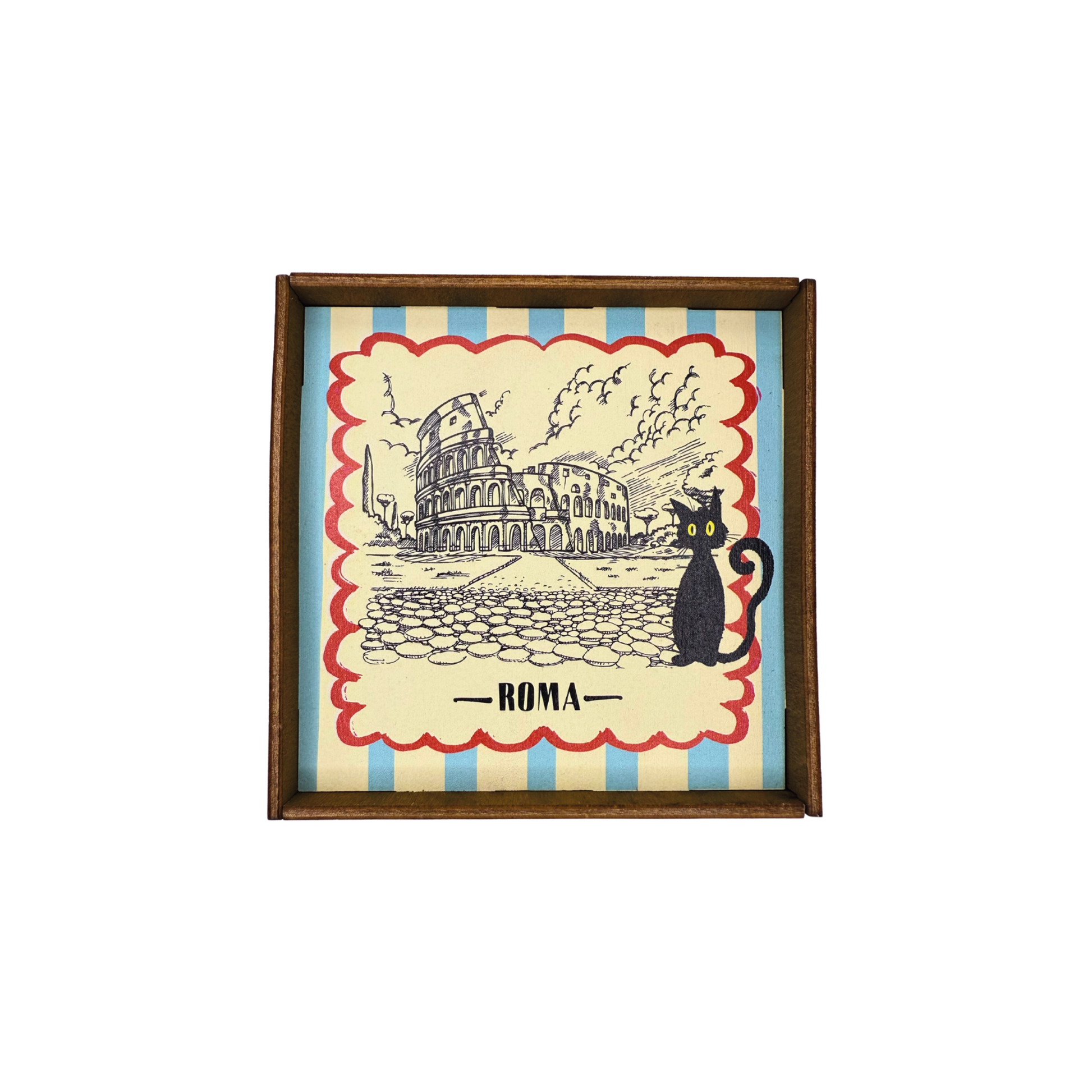 Ogni quadretto è decorato con i design originali MIBO, che celebrano Roma, la sua arte, i suoi simboli, le espressioni popolari e lo spirito ironico della capitale. Un pezzo unico, che unisce artigianalità, qualità e identità romana.