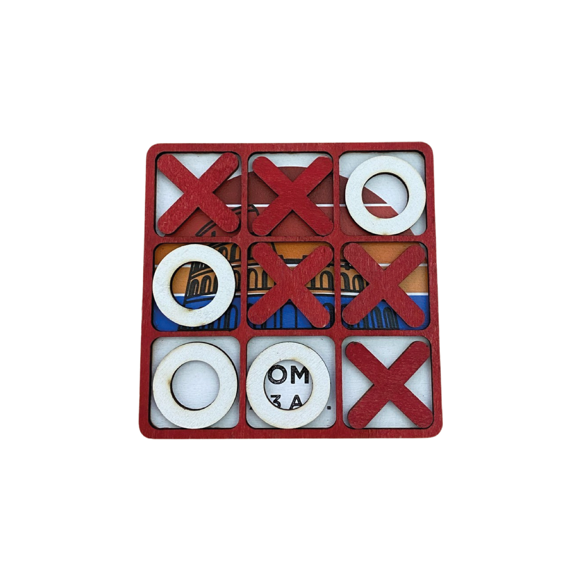 Il Tic-Tac-Toe MIBO (il classico Tris) è realizzato interamente nei nostri laboratori a Roma in legno naturale, con un processo artigianale che unisce tradizione e creatività. La base è stampata in UV ad alta qualità, mentre le pedine, anch’esse in legno, sono colorate a mano.