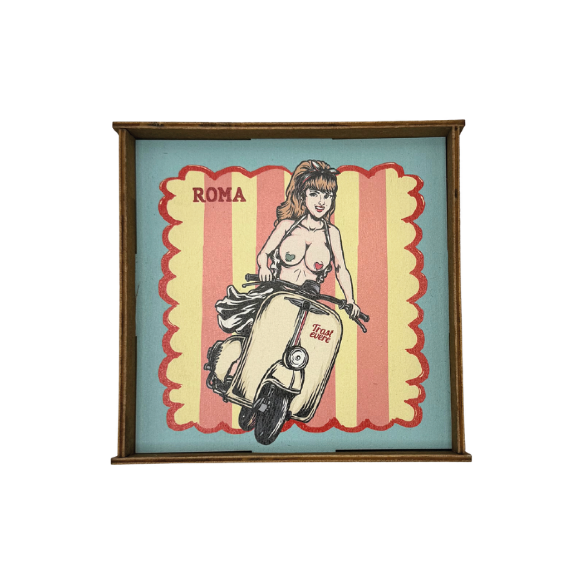 Ogni quadretto è decorato con i design originali MIBO, che celebrano Roma, la sua arte, i suoi simboli, le espressioni popolari e lo spirito ironico della capitale. Un pezzo unico, che unisce artigianalità, qualità e identità romana.